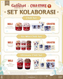 Kolaborasi ini tidak hanya menyuguhkan dessert lezat khas Cold Stone, tetapi juga membawa suasana dunia Teyvat lebih dekat ke penggemar.